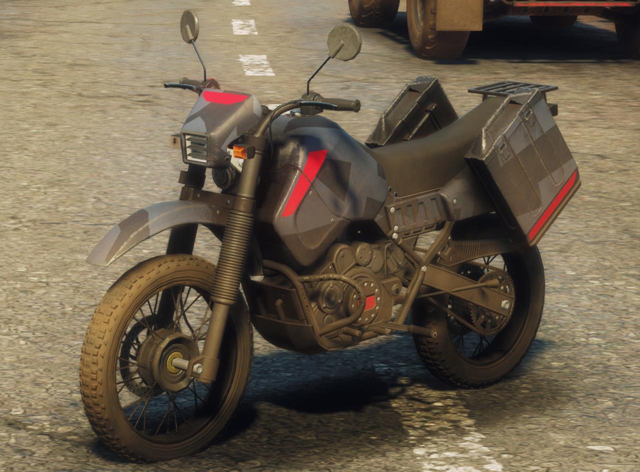 这些佣兵会驾驶“繁荣猎人”摩托车赶到现场,这个摩托车除了可以穿越狭小空间以外没有任何优点,很多雇佣兵不愿意骑着它去执行任务,因为没有任何防护会很容易让他们丢掉性命。与其一同赶来的还有“流浪”型越野车,这个全地形车没有任何防护材料,但总比摩托车四周空荡荡的感觉要好,并且荷载人数要比摩托车多上一人。