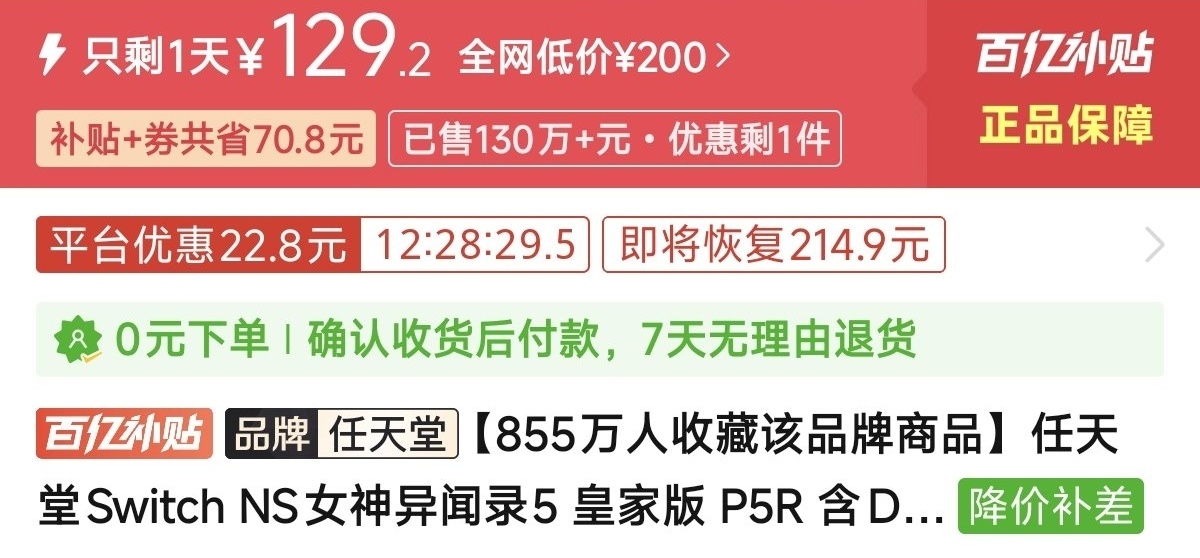 评价:虽然有水分,但哪怕在粉丝之间,能被誉为天下第一也足以见得p5r对其受众的吸引力,我想没人能拒绝过一年白天当高中生、晚上拯救世界的生活吧?129的卡带绝对是超值好价,买就完了。