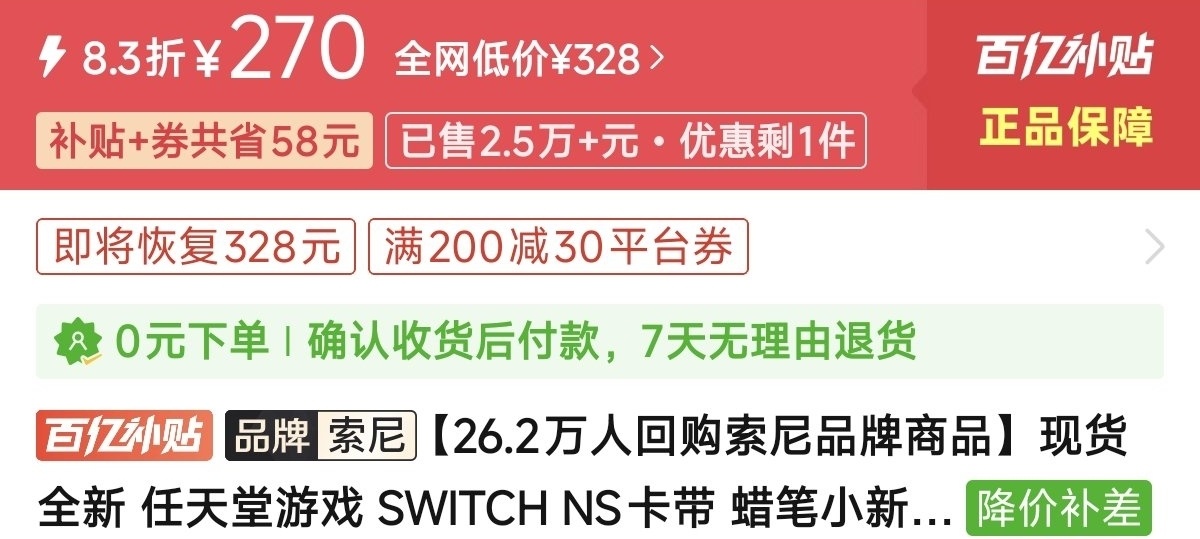 注:卡带价格受多种因素影响,可能我上午发的价格下午就有变化。因此如果有兄弟遇到比帖子更低的好价,或者一些我没有列出来的游戏的最新低价,都希望可以分享在评论区作为补充。
