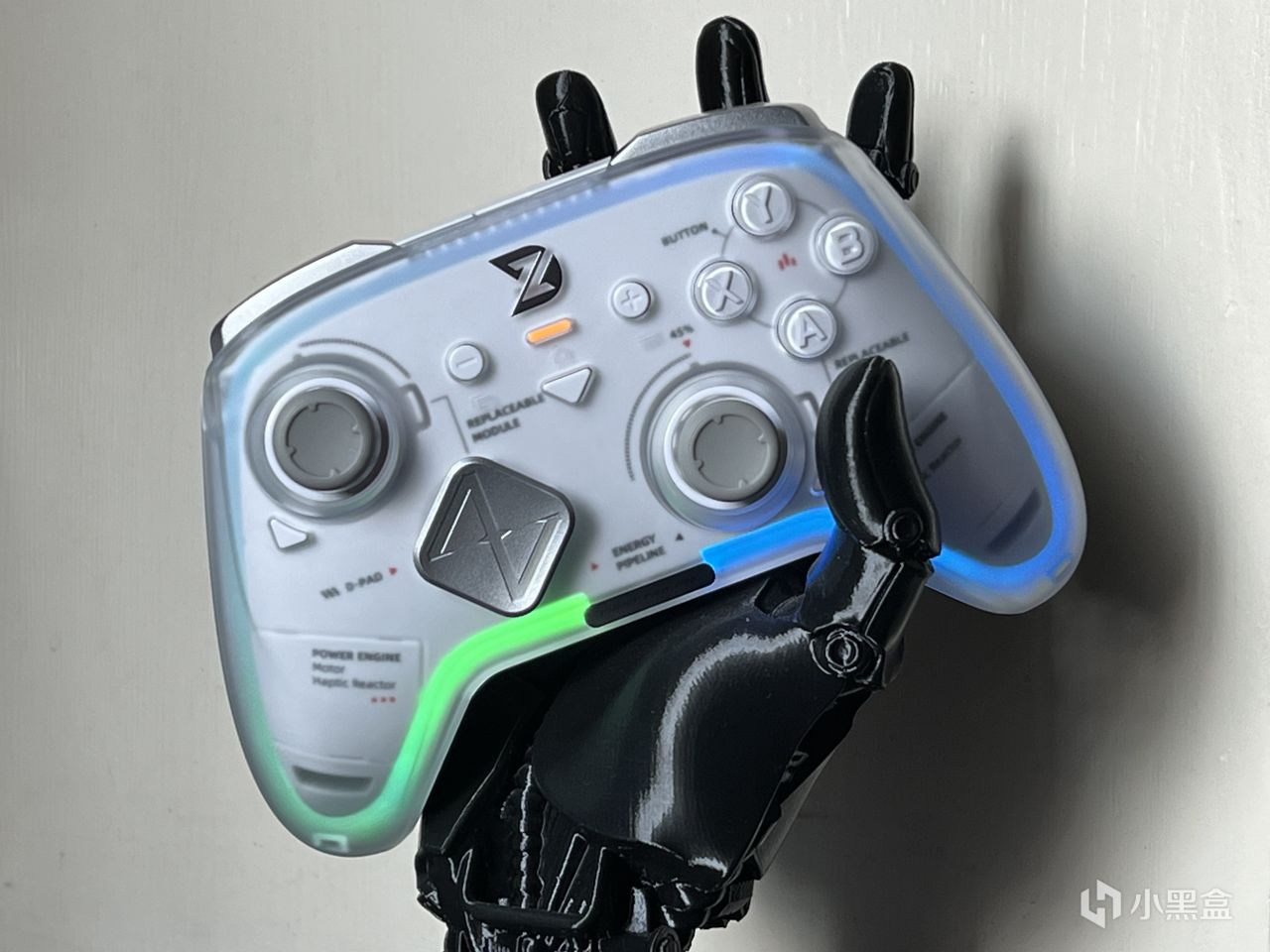 拿起手柄,我在这里就不多废话介绍手柄的外观了,大体就是一个Xbox的同款非对称模具+可替换面壳+RGB灯带的设计。