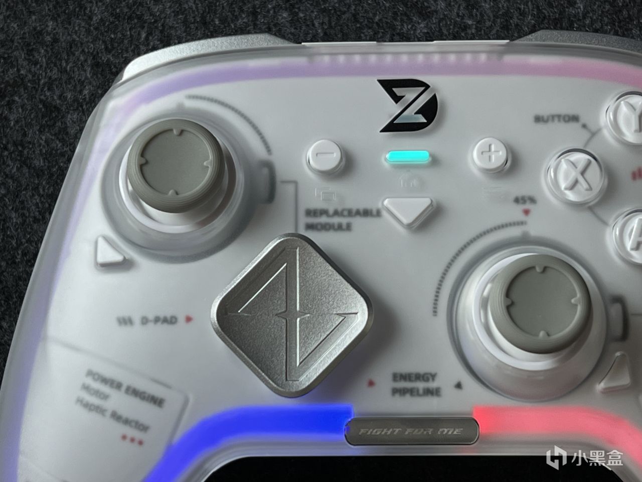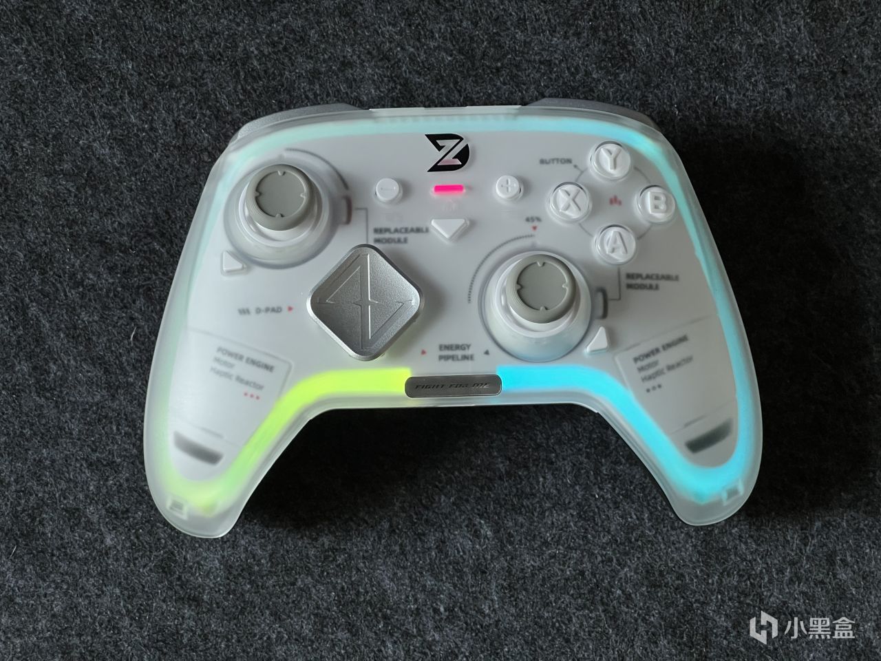 拿起手柄,我在這裏就不多廢話介紹手柄的外觀了,大體就是一個Xbox的同款非對稱模具+可替換面殼+RGB燈帶的設計。