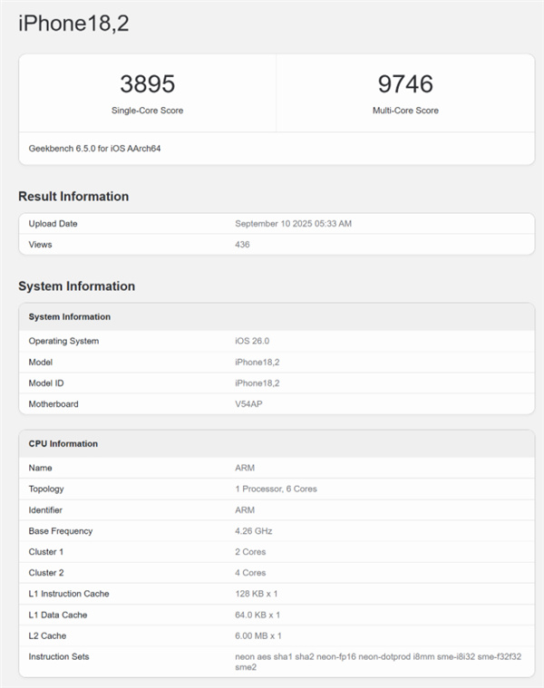 但恐怖的是单核性能,3895分的成绩远超骁龙8 Elite的3100,不知道新一代的骁龙8 Gen5 Elite能够超越苹果。