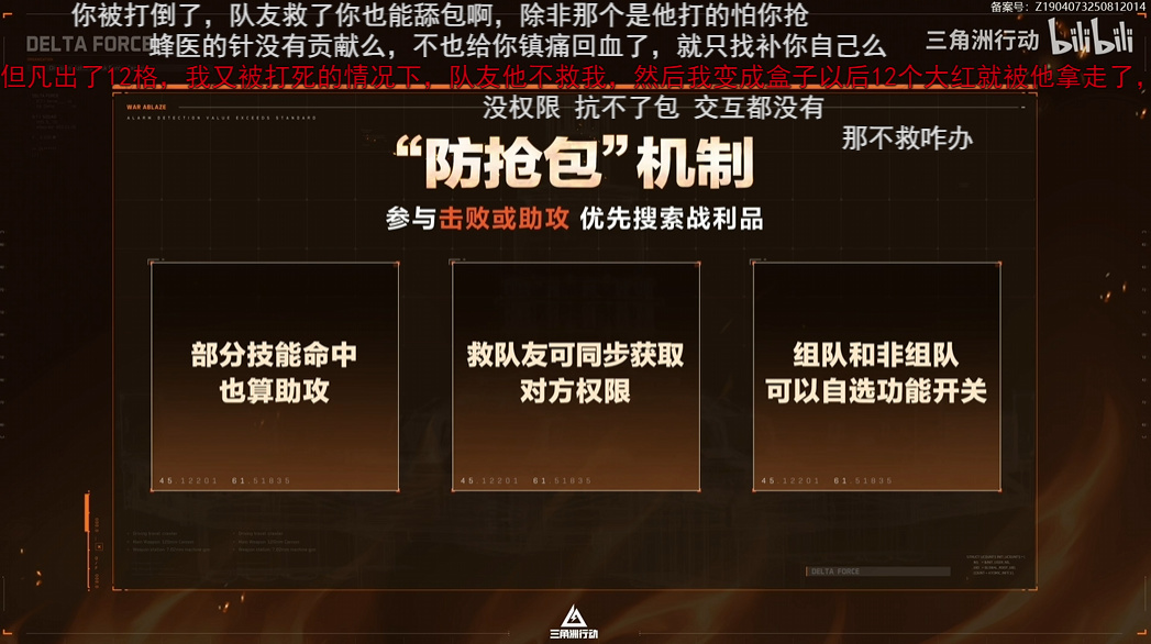从三角洲9.17新赛季的前瞻直播中也能得出,官方观察到了搜打撤游戏的痛点,并在不断调整优化。例如,针对玩家反馈“混子抢包”问题,三角洲新赛季将会推出“战利品保护系统”(防抢包)。又或是为了落实更高的物资收益+合理带入门槛的绝密体验环境,增加绝密巴克什&绝密航天基地区域内物资投放,调整入局门槛,以及同步修改了制式装备券的设计等。