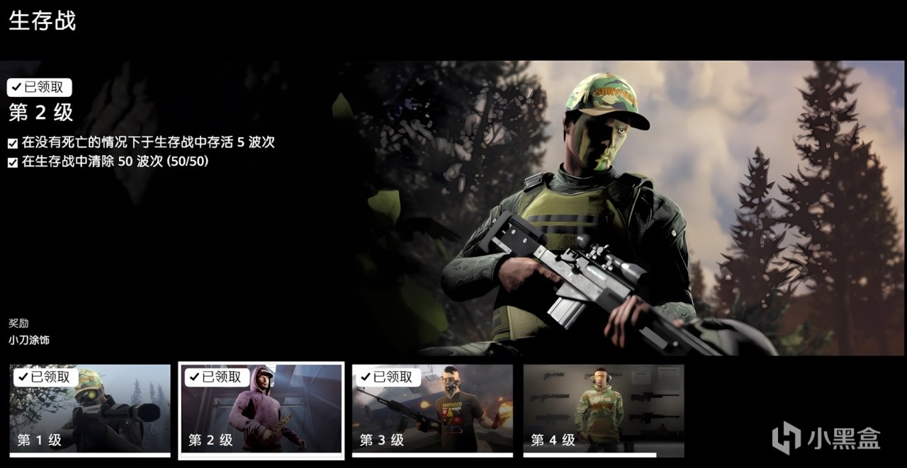 一款是完成次世代《增強版》職業進度“生存戰”第二級解鎖的“烈焰皮膚”,經過上兩週的《佩島喪屍生存戰》後,大家應該差不多都完成了第二級挑戰解鎖了該皮膚,那麼本週就可以前往廂型車換上這款皮膚了。這個皮膚還挺帥的。