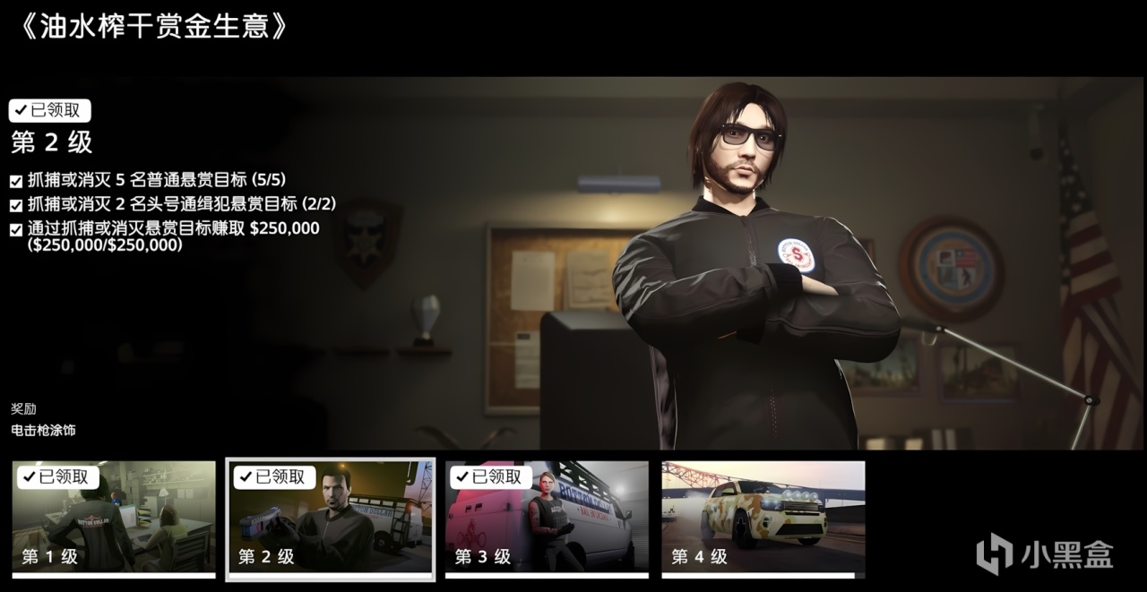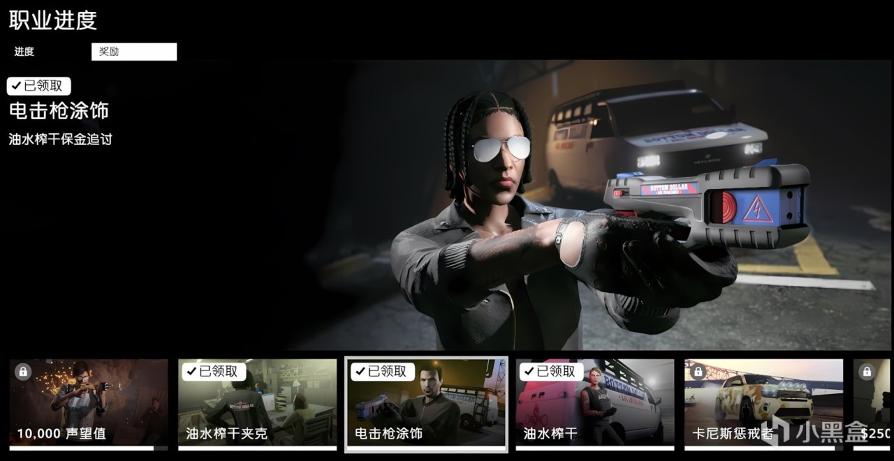 電擊槍皮膚:通過完成次世代《增強版》的職業進度挑戰“油水榨乾賞金生意”保金辦公室第二級挑戰獲取一個槍皮膚。
