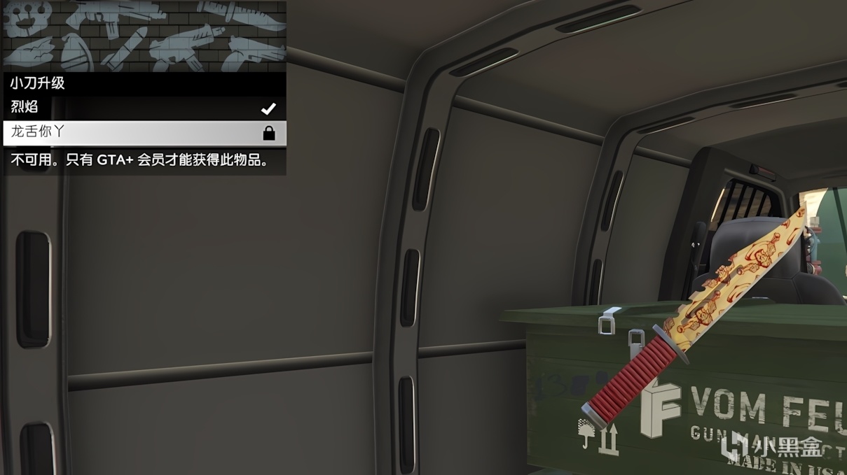 另一款皮膚同樣是10月GTA+會員的獎勵之一,小刀的“龍舌蘭”新款皮膚,不用多說R星這麼安排,顯然又是爲了這碟醋包了盤餃子,爲了賣會員打廣告做宣傳。