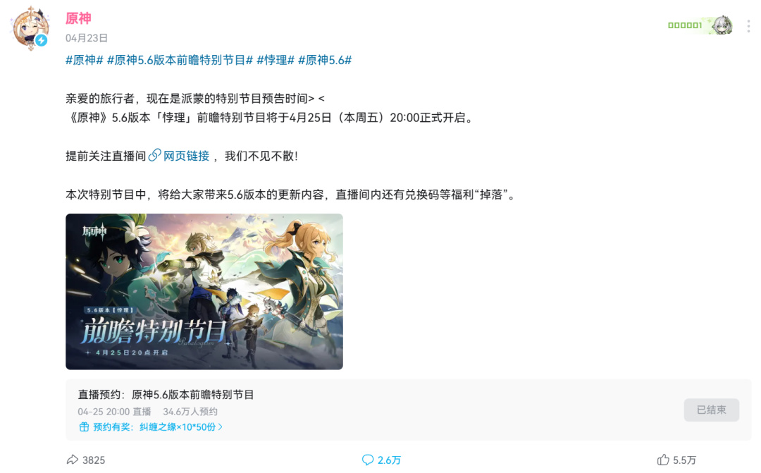 一個直觀的證據是,《原神》5.6版本前瞻直播預告的B站動態獲得了2.6萬條玩家評論,遠超先前納塔版本的任何一次前瞻預告,許多老玩家也來到這條動態下分享了看到經典角色再登場的激動之情。