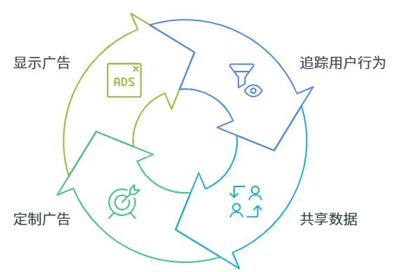 这就是为啥你在b站看了耳机测评,过一会打开淘宝的时候,它就会给你推送耳机广告的原因,因为追踪器早就在背后共享了你的浏览信息。