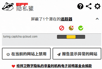 一旦工具栏中的隐私獾的图标由灰色变成了黄色,就说明它开始工作了。