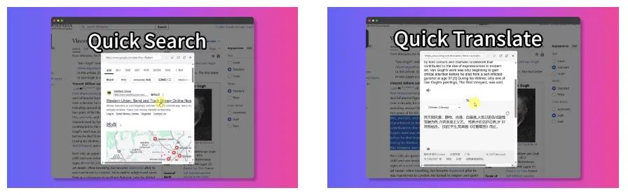 除此之外,还支持快速搜索、快速翻译,对于像川哥这种一天要看几十个网页的人来说性价比还是可以的。