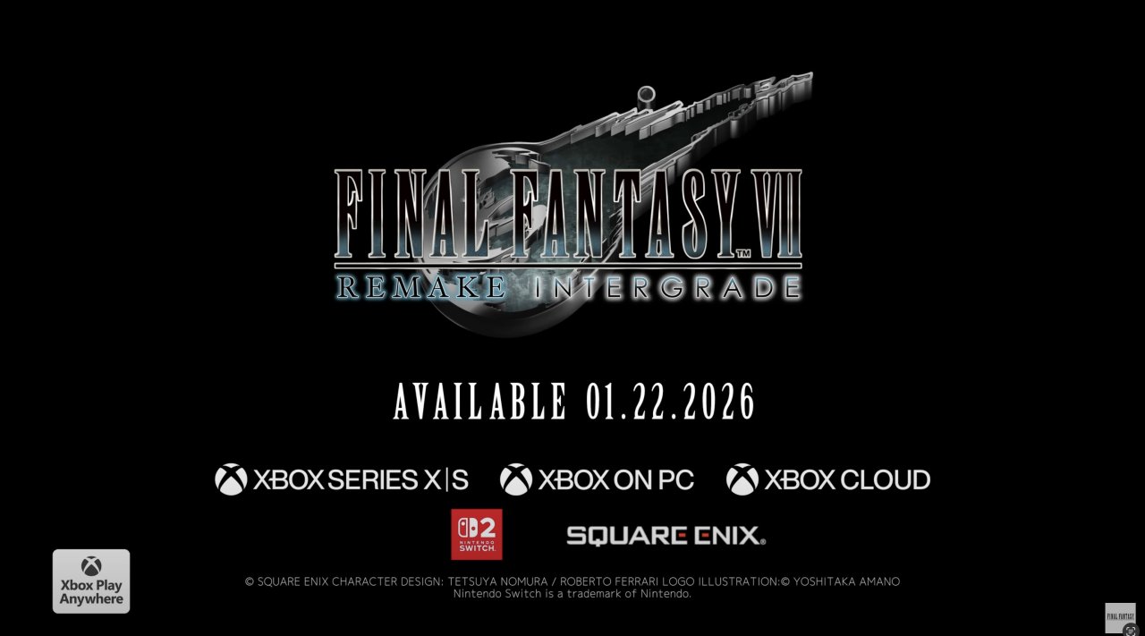 《最终幻想7 重制版》2026年1月22日在Xbox Series X|S和NS2发售