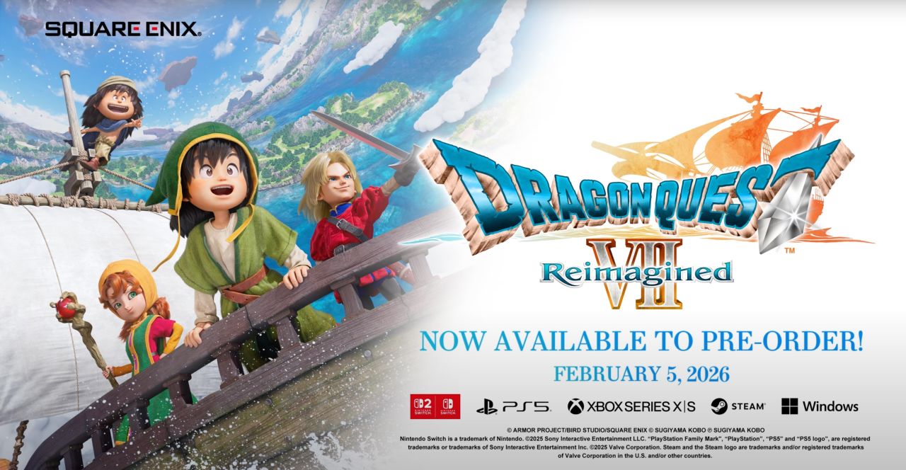 在今晚的任天堂直面会上,SE公布了《勇者斗恶龙7:Reimagined》,该作将于2026年2月5日发售,登陆PC(Steam/微软商城),PS5,Xbox Series,Switch 2和Switch。