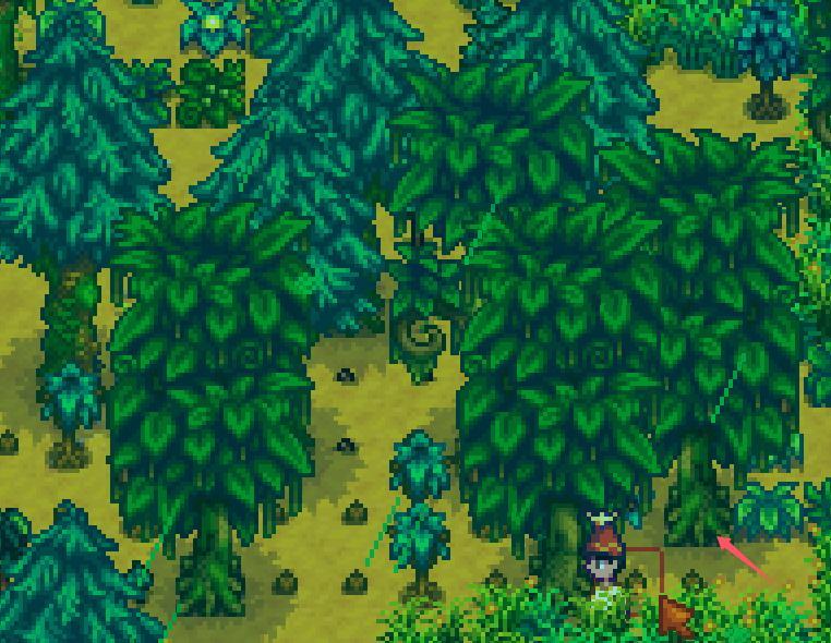 遇到其他樹木我們雖然不砍,但是儘量都搖一搖,有概率掉落長滿苔蘚的種子,也就是圖中綠色五角星形狀的物品,後面可以在農場自己種綠雨樹。