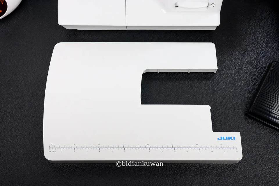 附赠的专用扩展台,可以直接和主机接驳,拼接出一个更大的操作台面,近处还有参考刻度尺。
