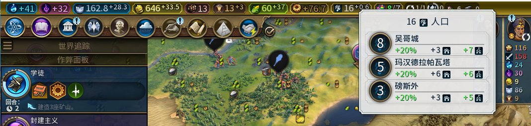 6.更詳細的奇觀提醒(加強版)(detailed wonder reminder)提供一個奇觀界面能看到ai造奇觀還剩多久,鼠標懸停上去就能看自己那個城能造什麼奇觀,搶奇觀十分有用。