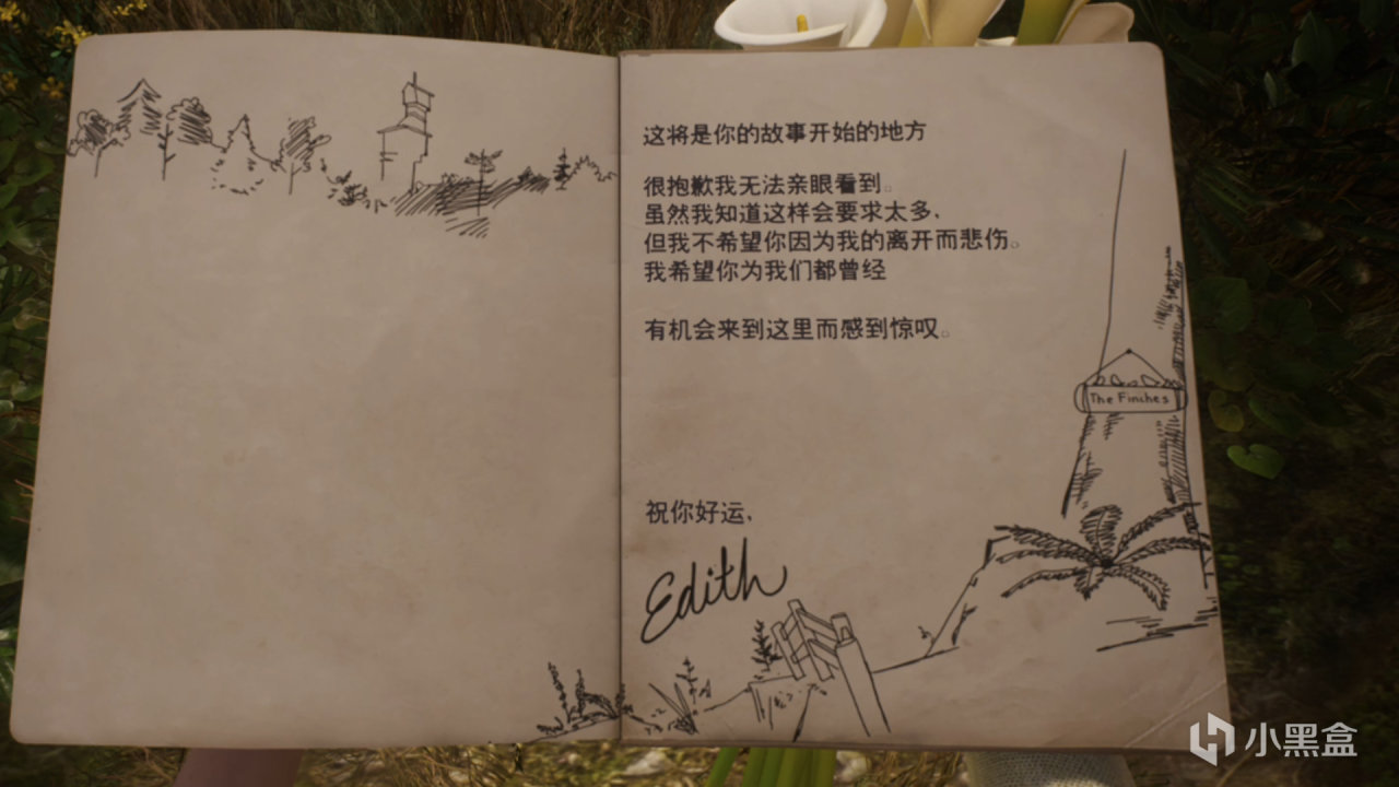 游戏开篇早有暗示,笔记本中留下名字的人都已逝去。她将所有这些故事记录下来,留给从未谋面的儿子。Edith(艾迪)在最后的部分独白是这样说的: