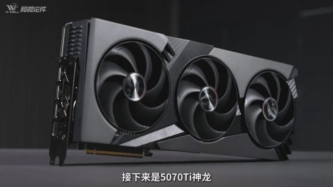 接下來是5070Ti 神龍,作爲微星50系列中的新成員,定位5070Ti旗艦型號。它配備了3把暴風7風扇,內部散熱用料豪華,採用5根6mm + 3根8mm熱管組合,核心區域還加入均熱板,整體散熱規格相當強勁。