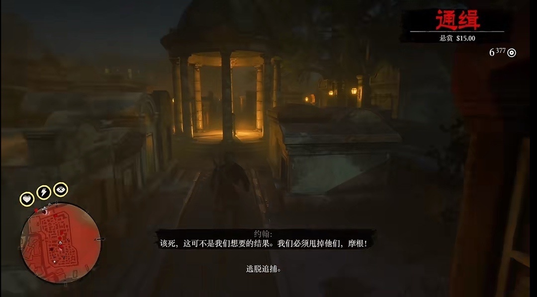 跑出城外摆脱追捕时可以再回头进入城内来摆脱约翰。