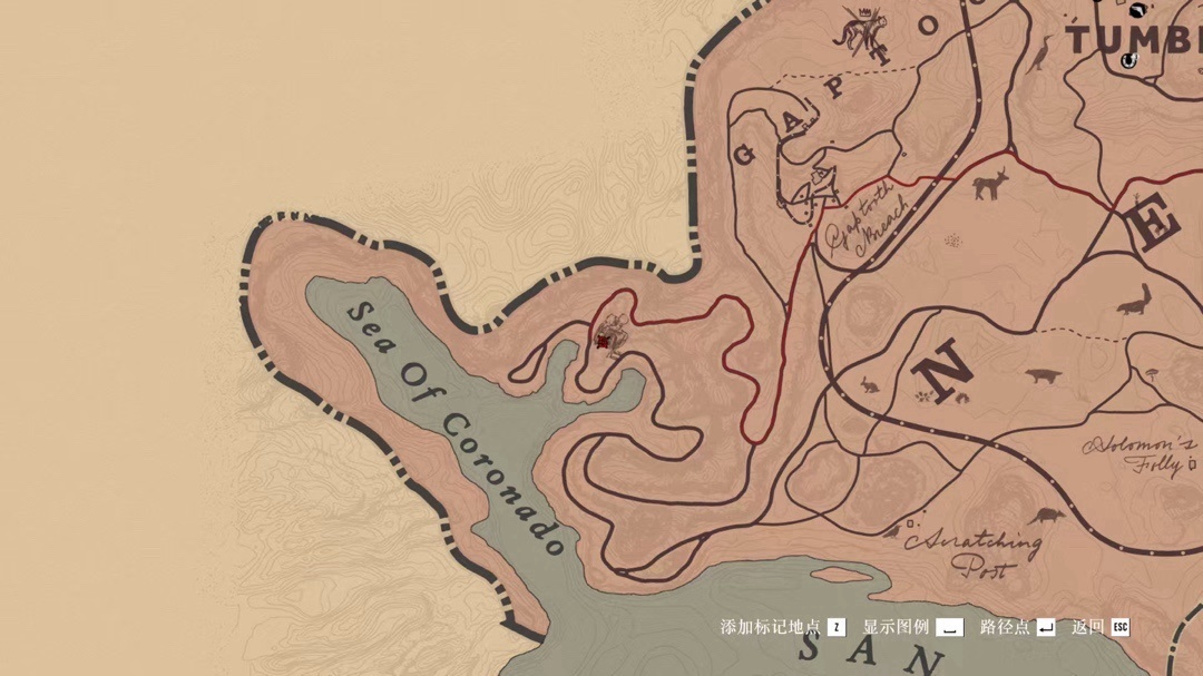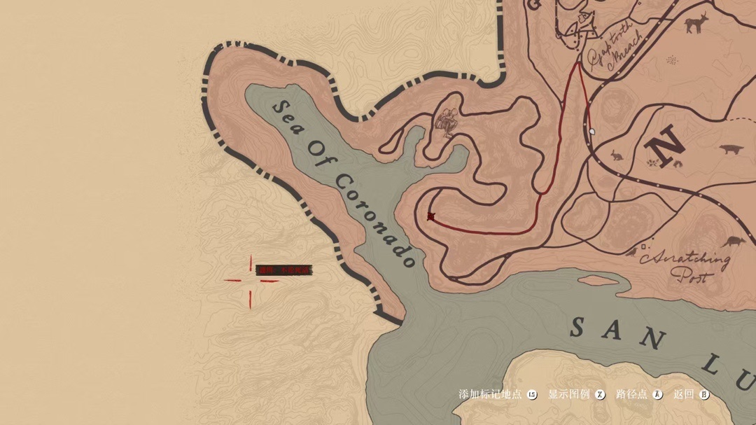 第一次来地图上有个X,找个没石头的地方上去找到并记录地标。