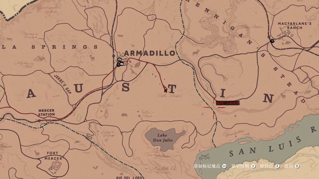 到图示标记的路口后等待约翰,约翰来了以后会自己前往任务点,此时我们就可以独自一人前往新奥斯汀完成收集之旅啦。
