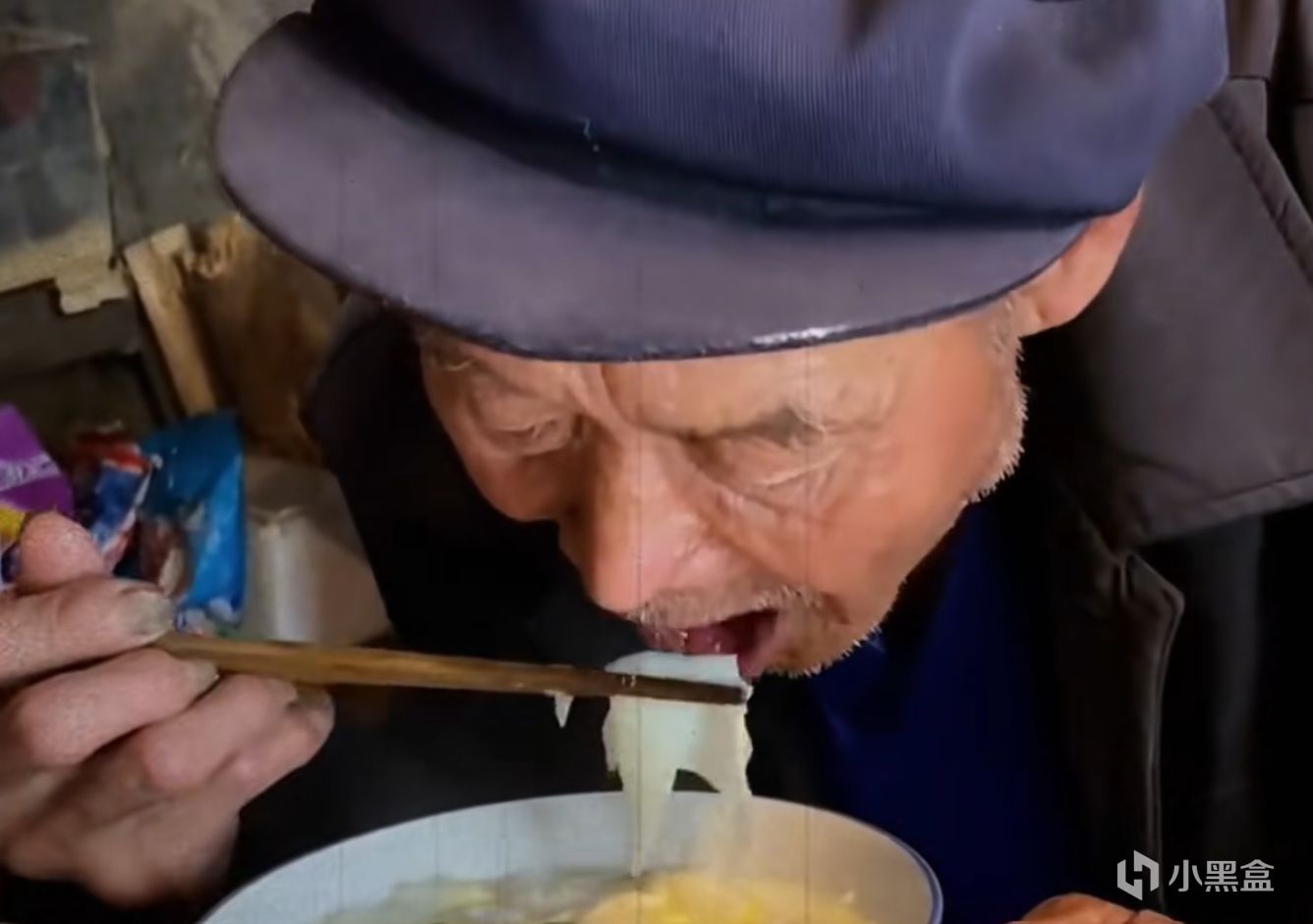 虽然这是他第一次做饭,但是老人还是吃得津津有味,也许这是老人几十年来吃过的最好吃的一碗面。