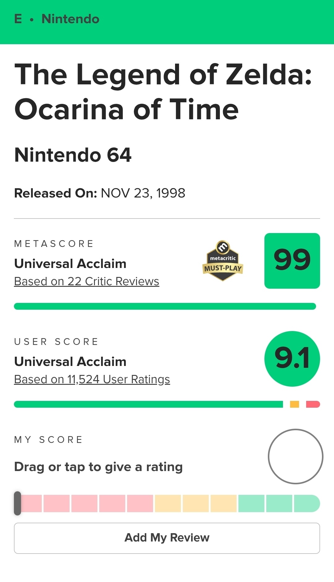 《塞爾達傳說:時之笛》99分,MC歷史最高分