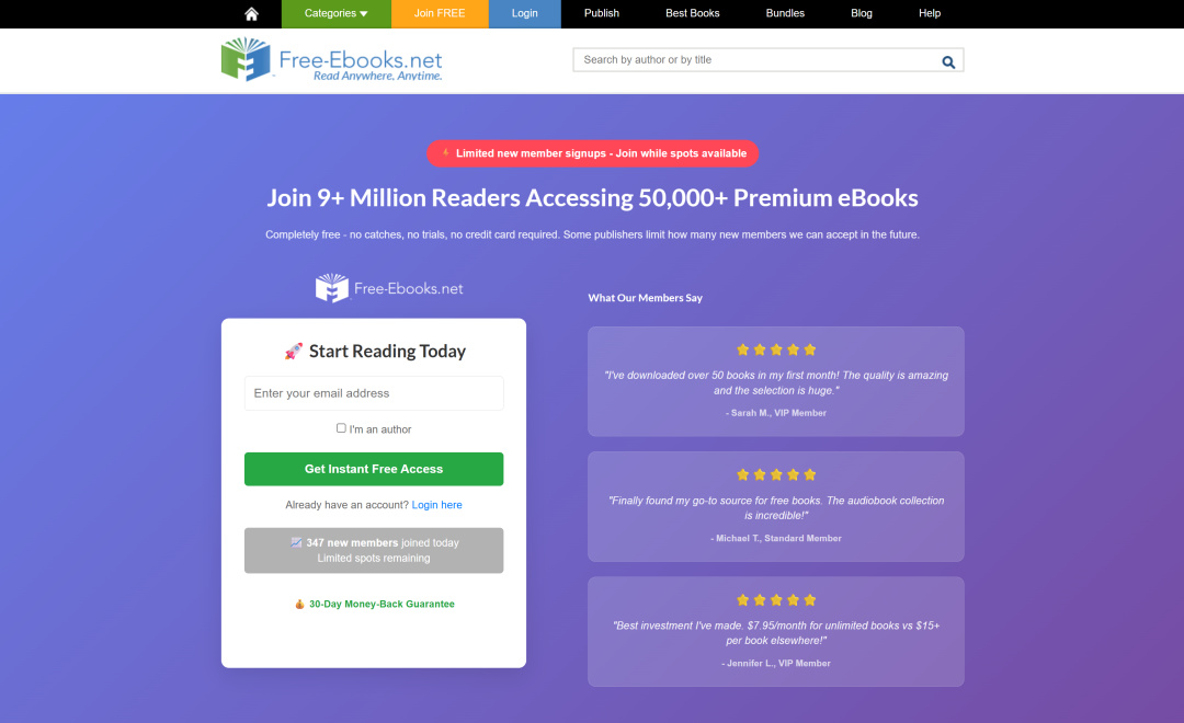Free EBooks 是一家以收录较新电子版书籍为主的站点,在电子书时效性上有一定优势,能提供相对较新的教科书资源。平台虽需注册才能下载书籍,但注册流程简单,对于需要获取最新学科教材的学生来说,是一个可参考的资源渠道,不过在使用过程中存在一些限制条件。