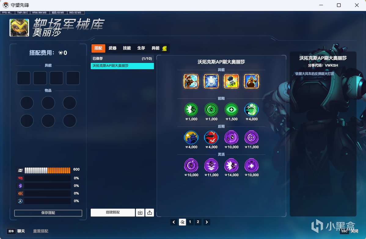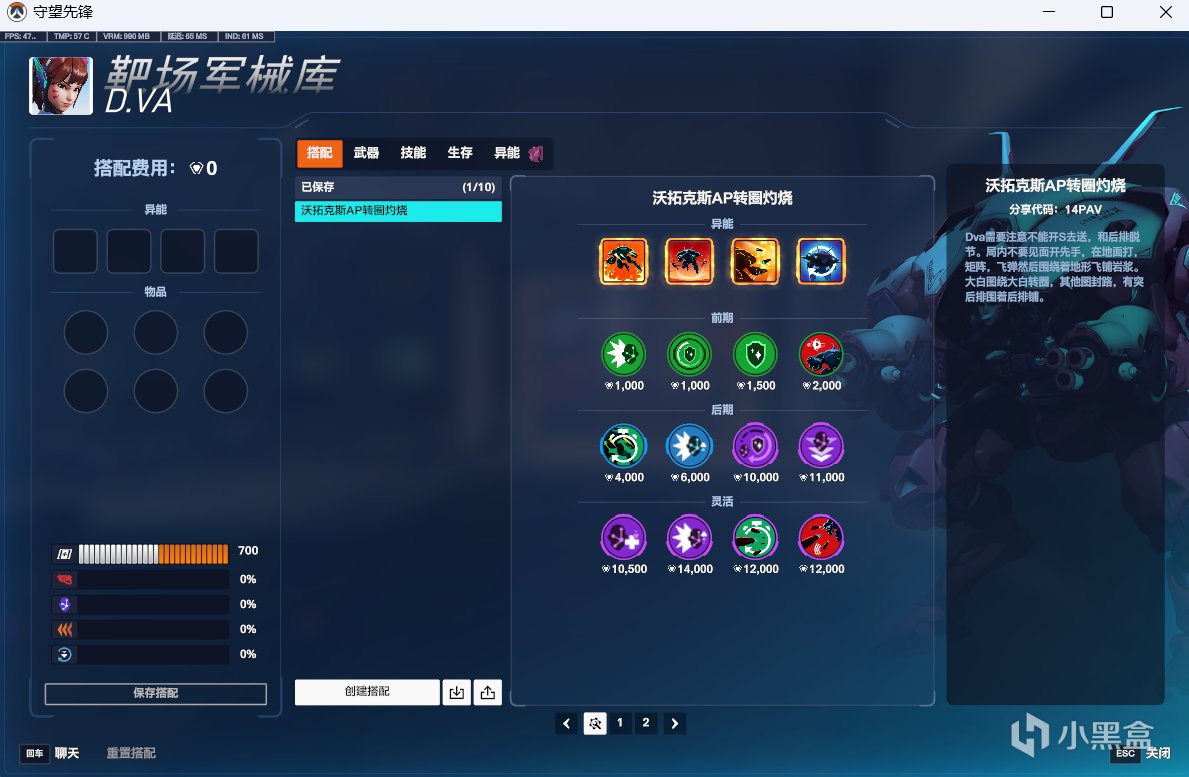 對面先手法雞可以後拿Dva管。後兩個異能可以換成吸收傷害和快速核爆的,記得要買空中核爆加傷和半徑的裝備。
