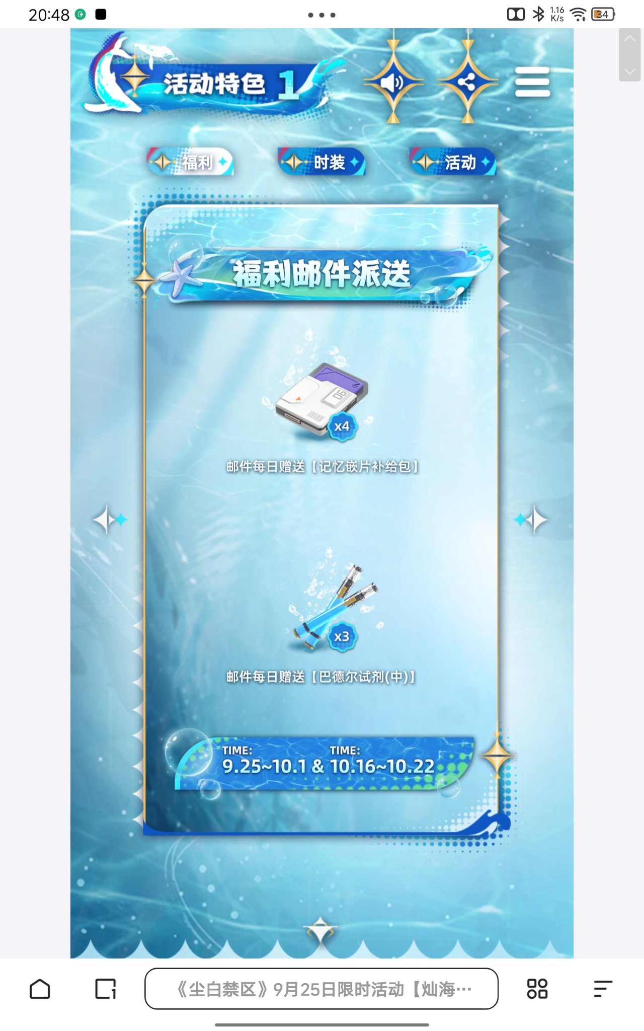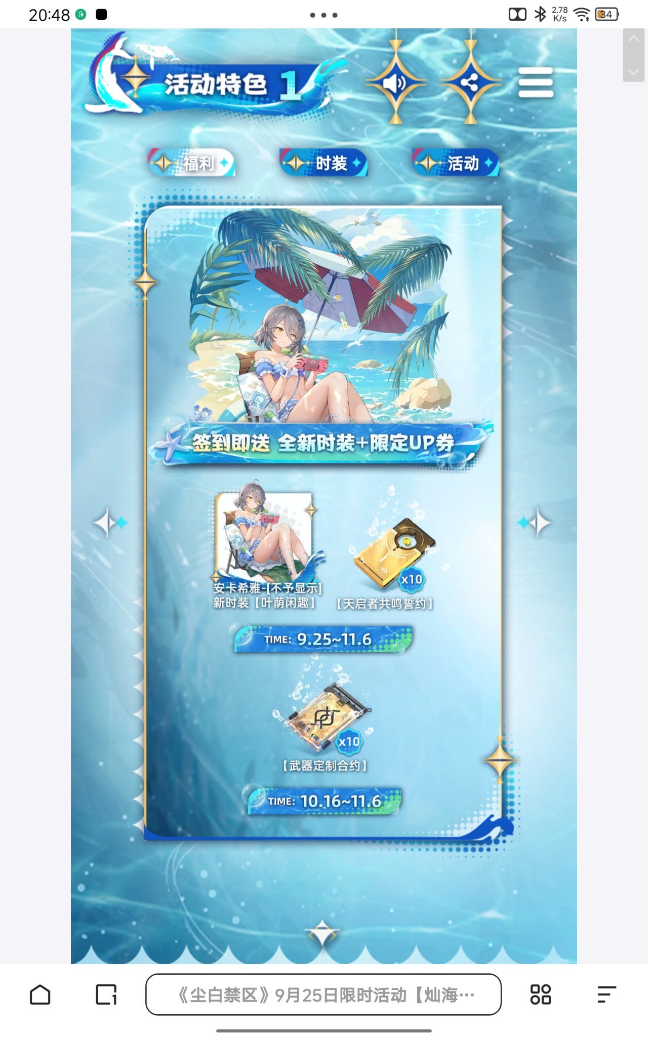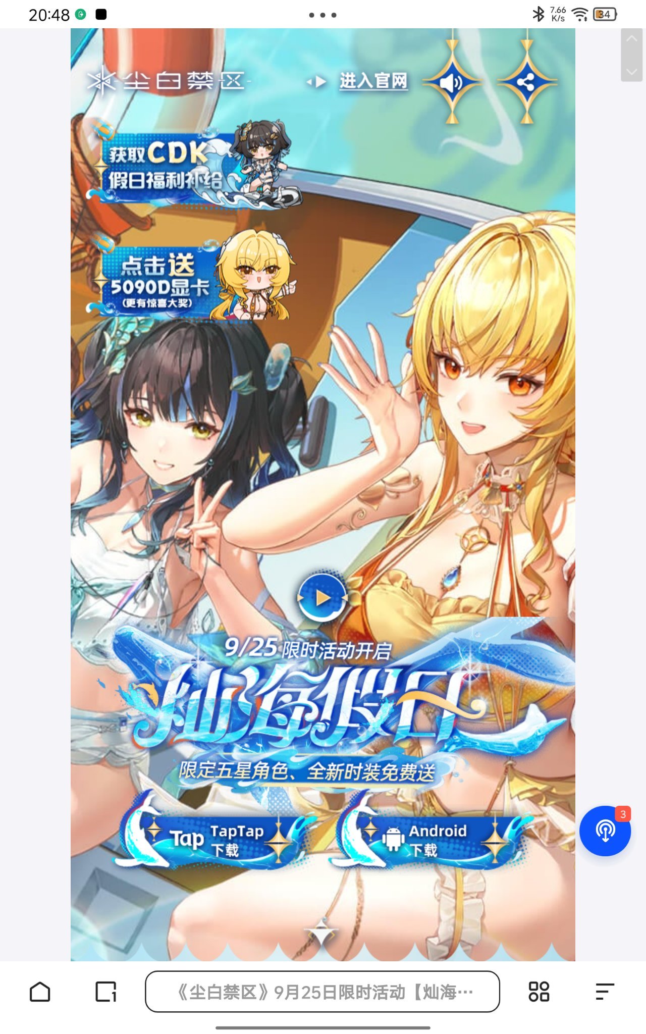 分析員好,全新限時活動「燦海假日」主題頁現已上線!現在網上搜官網就可以參與活動,分析員可前往查看更多精彩內容,參與主題頁抽獎活動,有機會獲得全新限時售賣時裝、七彩虹顯卡iGame RTX5090 D Advanced OC 32G以及《塵白禁區》中秋心意禮盒等驚喜獎勵→https://www.cbjq.com/p/zt/2025/09/10/fab/index.html?utm_source=wechat#/