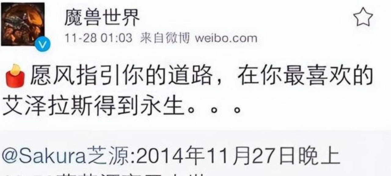 2014年,曹芝源旧病复发,他体内的癌细胞开始扩散,他深知自己命不久矣,于是他在《魔兽世界》中给自己的母亲以及游戏中的战友留下了一件特别的礼物,一个一看见就能想起他的礼物。