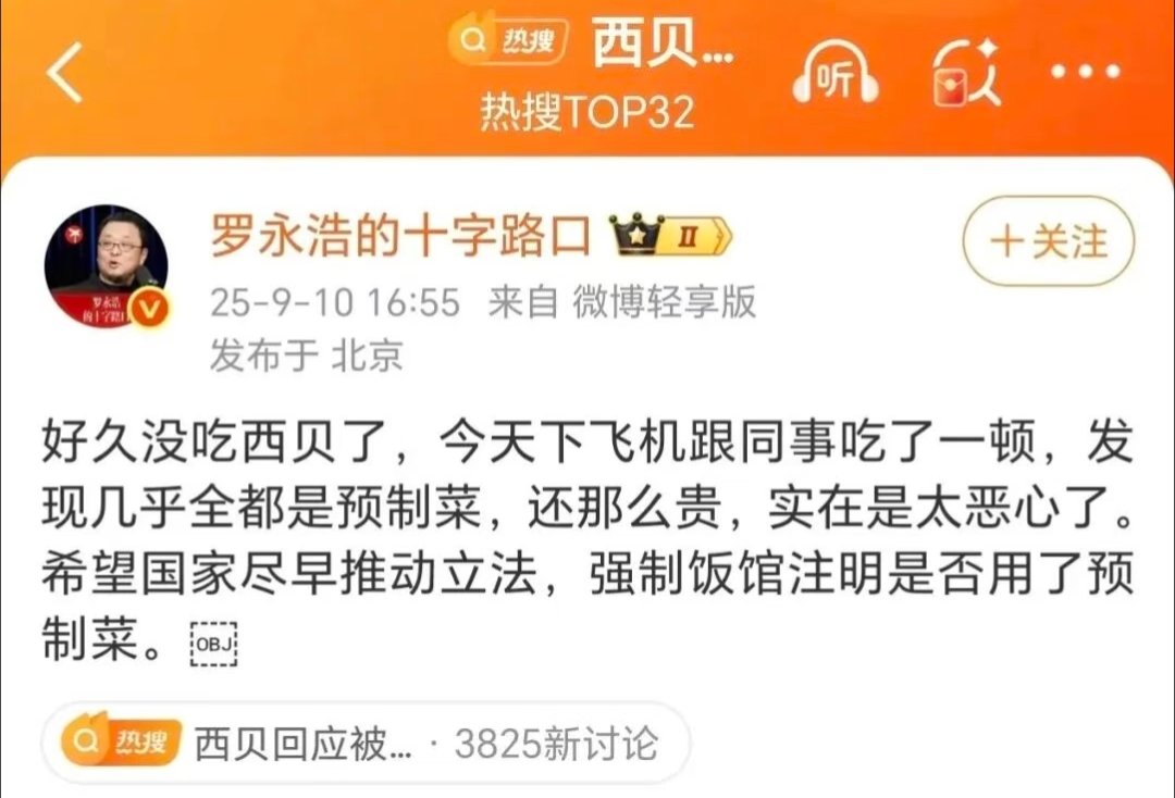 直到現在,老羅用微博撕開了一個口子,讓消者能夠有一個渠道一起表達出自己的不滿。這時候,品牌方纔發現消費者對這些預製菜高價的心智概念已經有了很強的抵抗情緒。