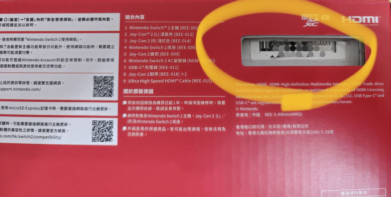 打開NS2外包裝盒,查看機器、手柄、配件是否齊全,或者有沒動過的痕跡