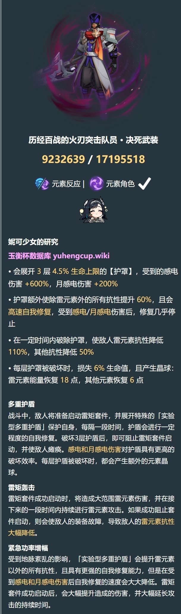 4.護盾會高速自我修復,受到感電或月感電傷害後修復幾乎停止。並且,存在護盾時,雷抗仍爲10%,其他抗性爲70%。6.0B深境螺旋中沒有第4條機制。