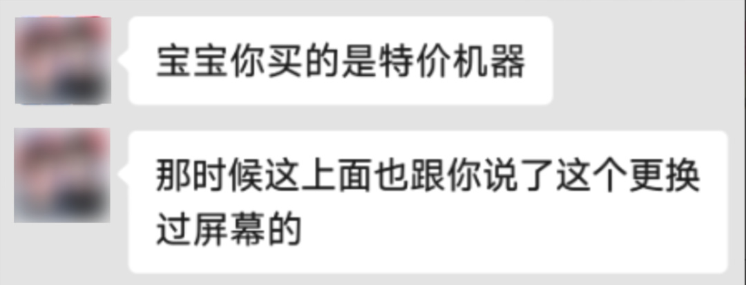 “果果姐姐”在知道了我的身份后,刚开始态度还是可以的,但都在撇清责任,跟我说发货前已经给小孩说明过是换过屏了。