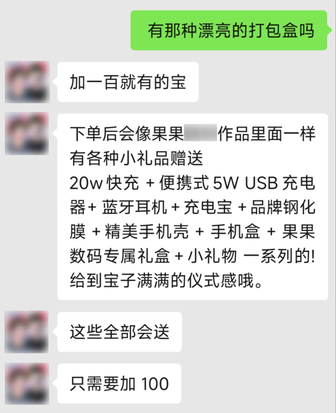 最后再来一个图穷匕见,“果果家都是原装正品机,该搭配的小礼物也一样不少。”