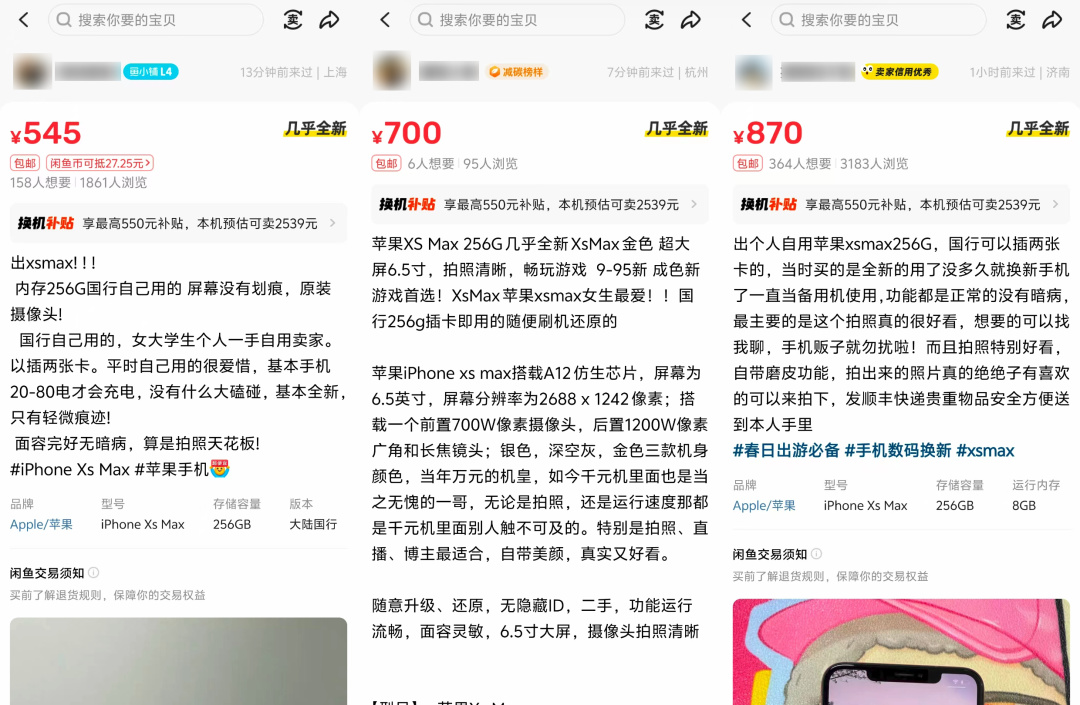 这个战损级别压根就不值1150块,而且托尼到某鱼上看了眼,256GB的二手iPhone Xs Max也就卖500~800块。