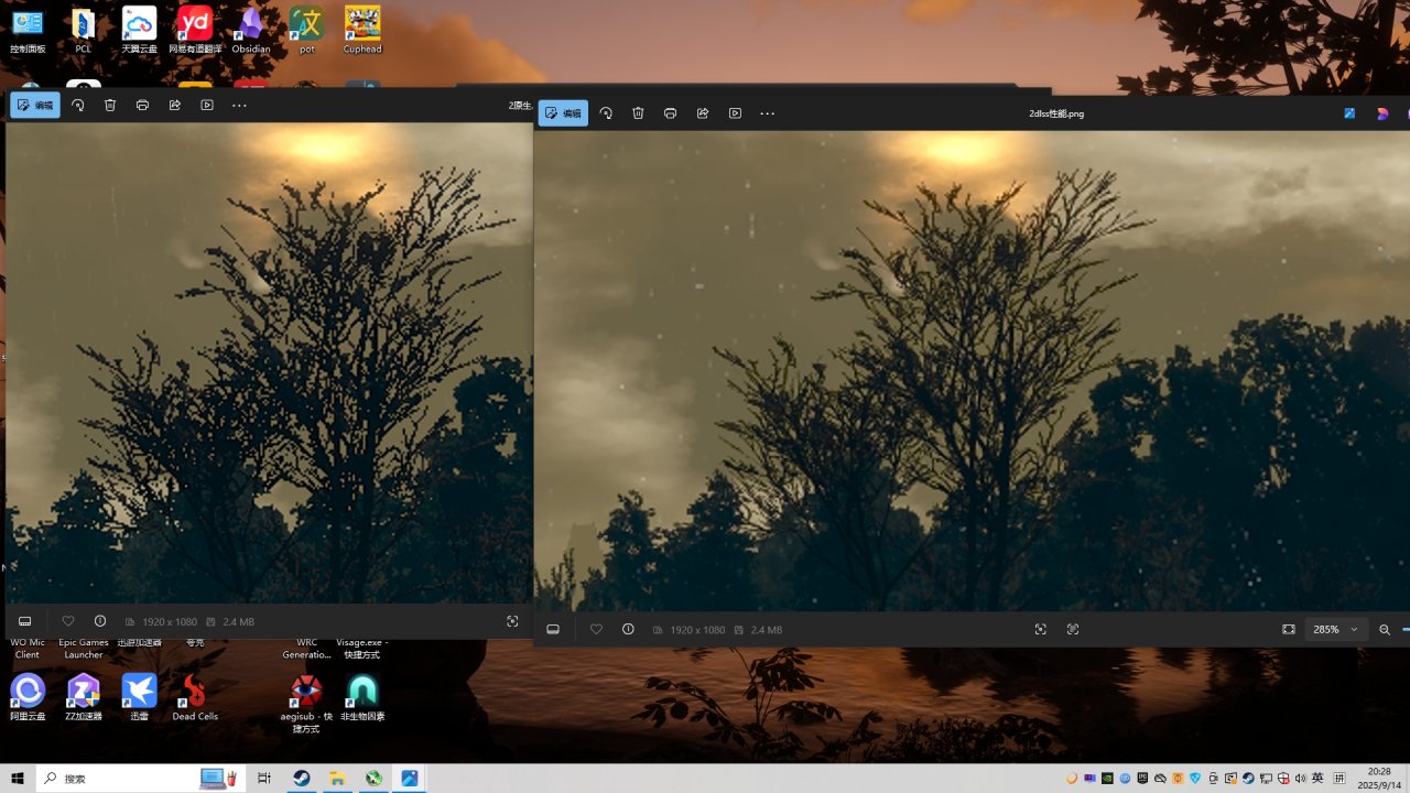 左原生 右性能,原生畫面樹枝密集處完全糊成一片,細節幾乎全部消失。性能擋樹枝密集處條理分明,細節清晰,樹枝末端鋸齒表現明顯好於原生畫面。