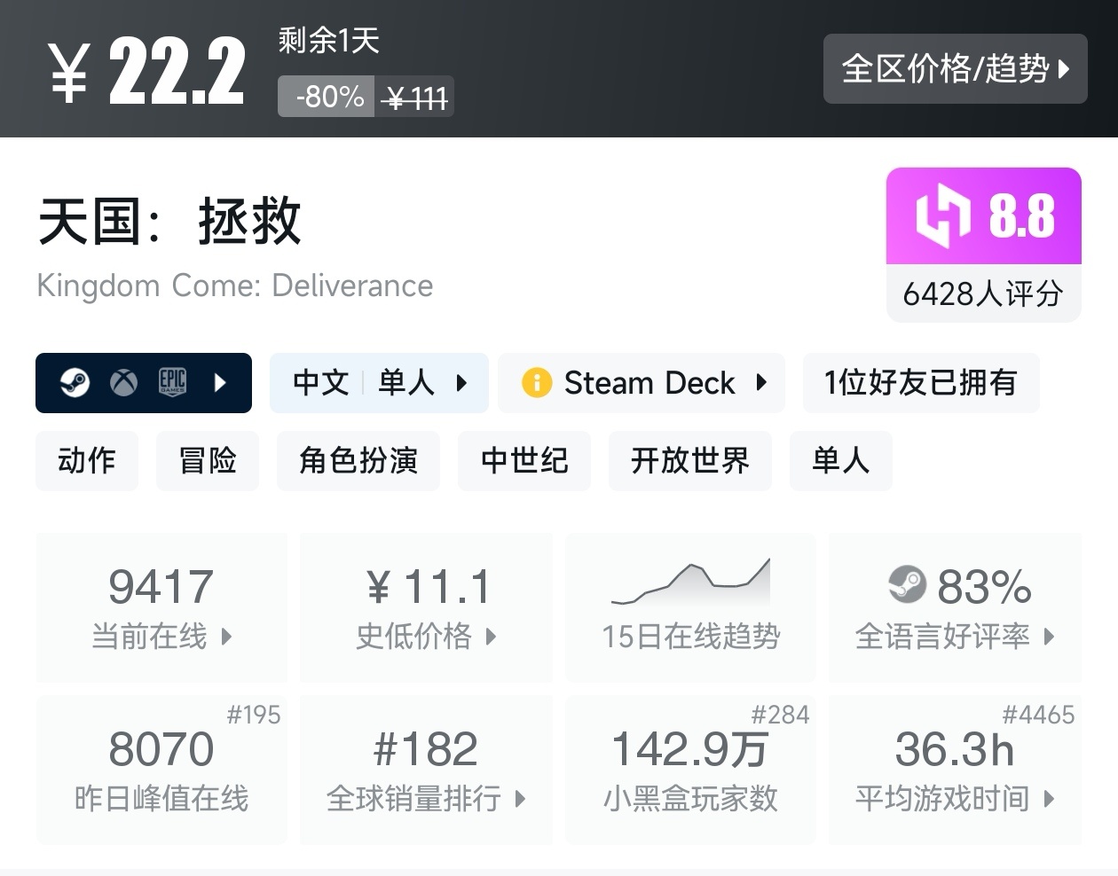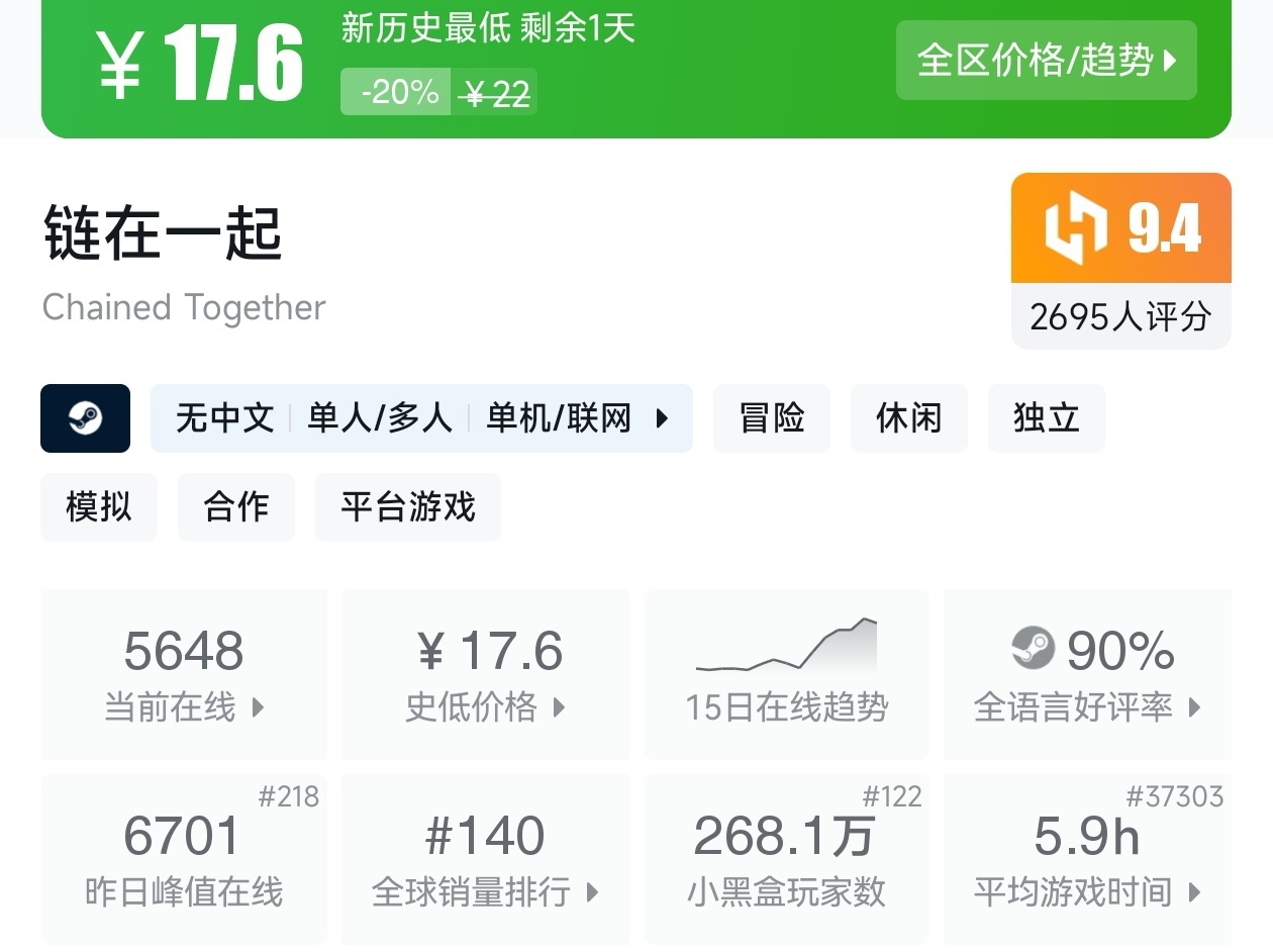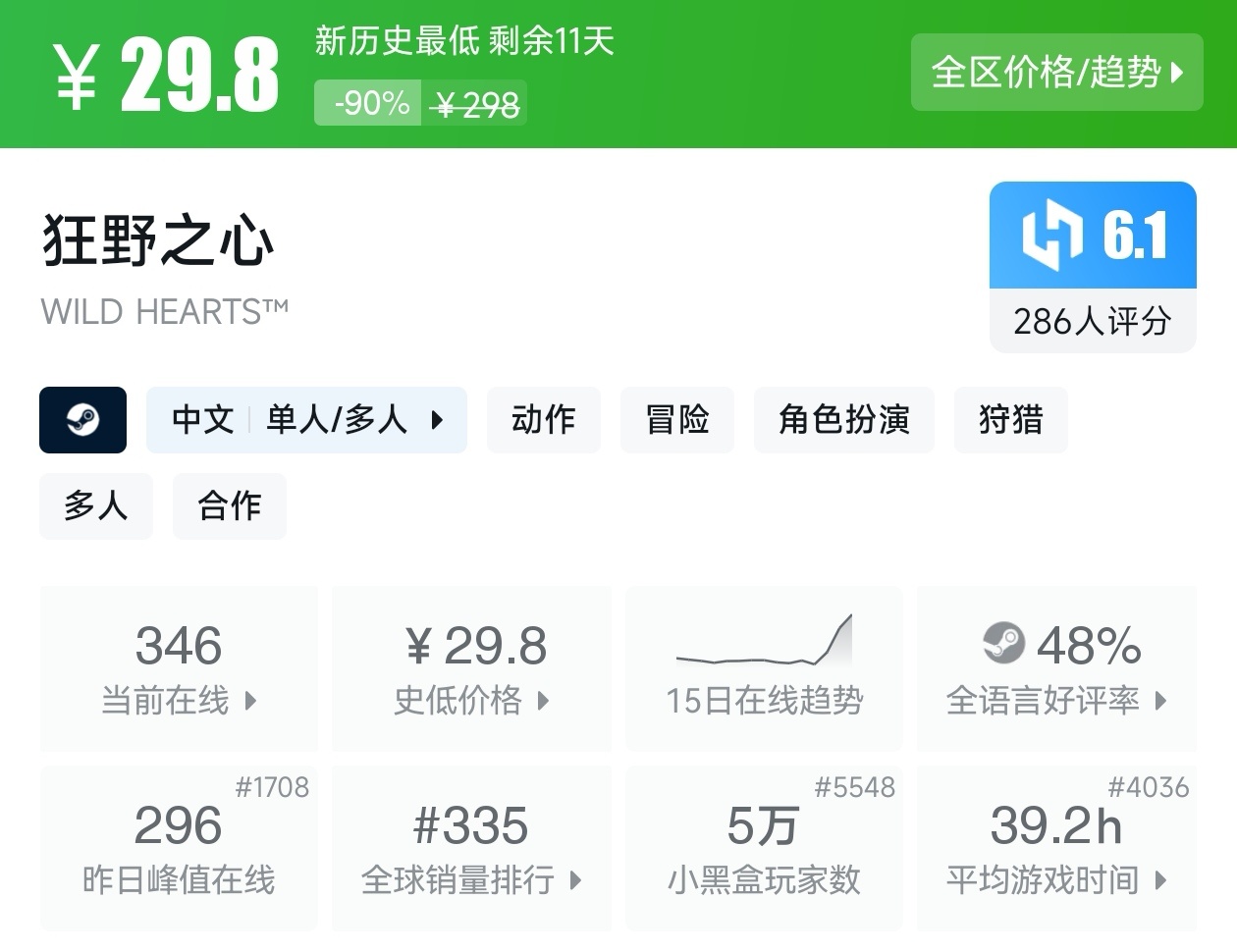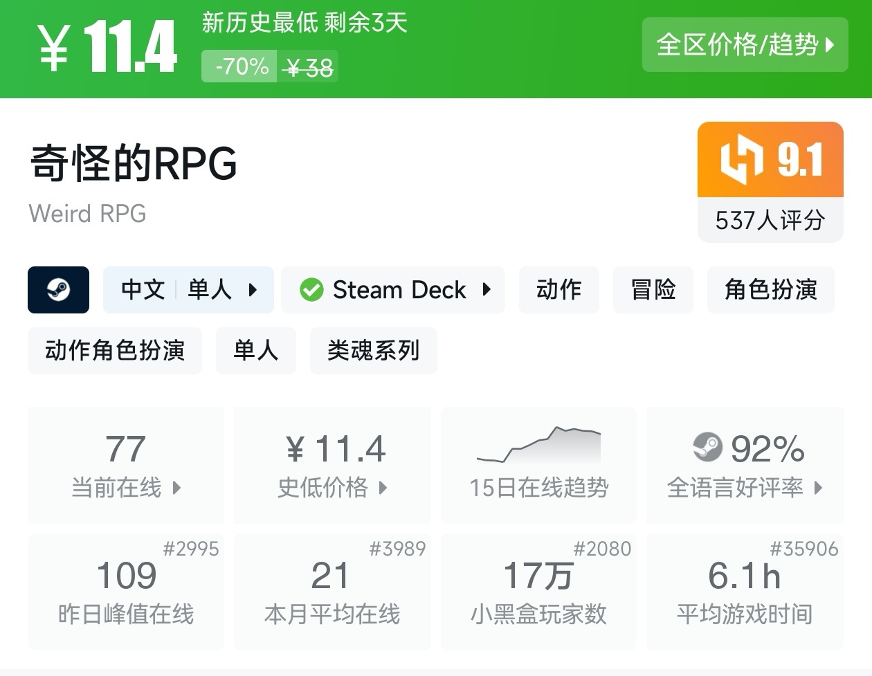 大家好,没错,又是我,你们的老朋友亦然,如你所见,这期帖子是一期关于近期30元以下游戏的汇总,里面还有很多史低新史低游戏,可以说力度很大,当然,范围也很广,甚至还有一些盒友都很感兴趣的大作,我将为各位盒友进行一个汇总,希望我的汇总,能够帮助各位盒友挑选心仪的游戏。
