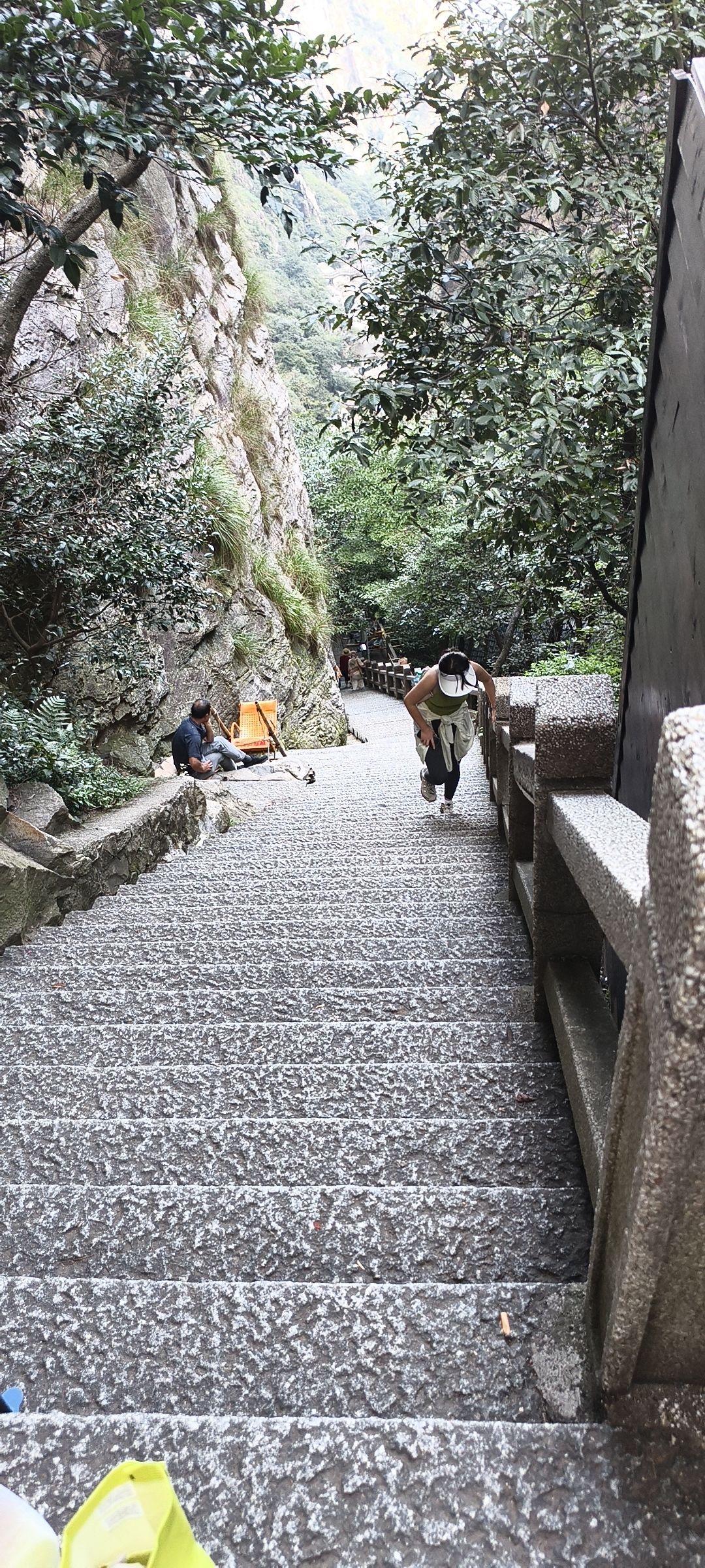 绿色线路(东线)为爬山路线,身体素质不佳者,请慎重攀爬三叠泉。三叠泉来回约为2600级台阶(约为普通住宅楼180层),台阶非常陡,易滑倒。