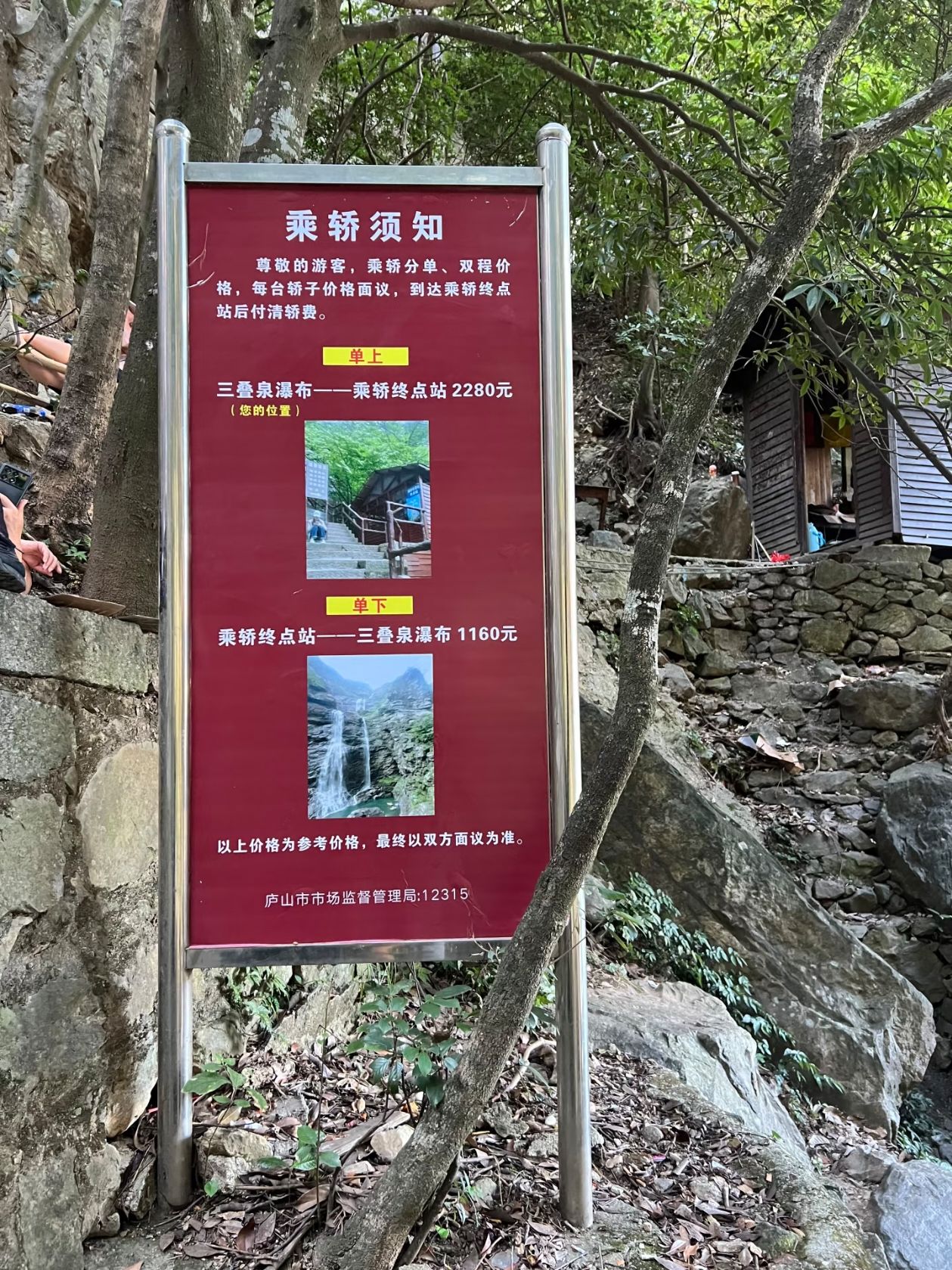 推荐您在爬山前准备雨衣。庐山天气变幻莫测,天气预报不一定准确。三叠泉爬山途中,雨衣10元一件,矿泉水10元一瓶,红牛15一罐。