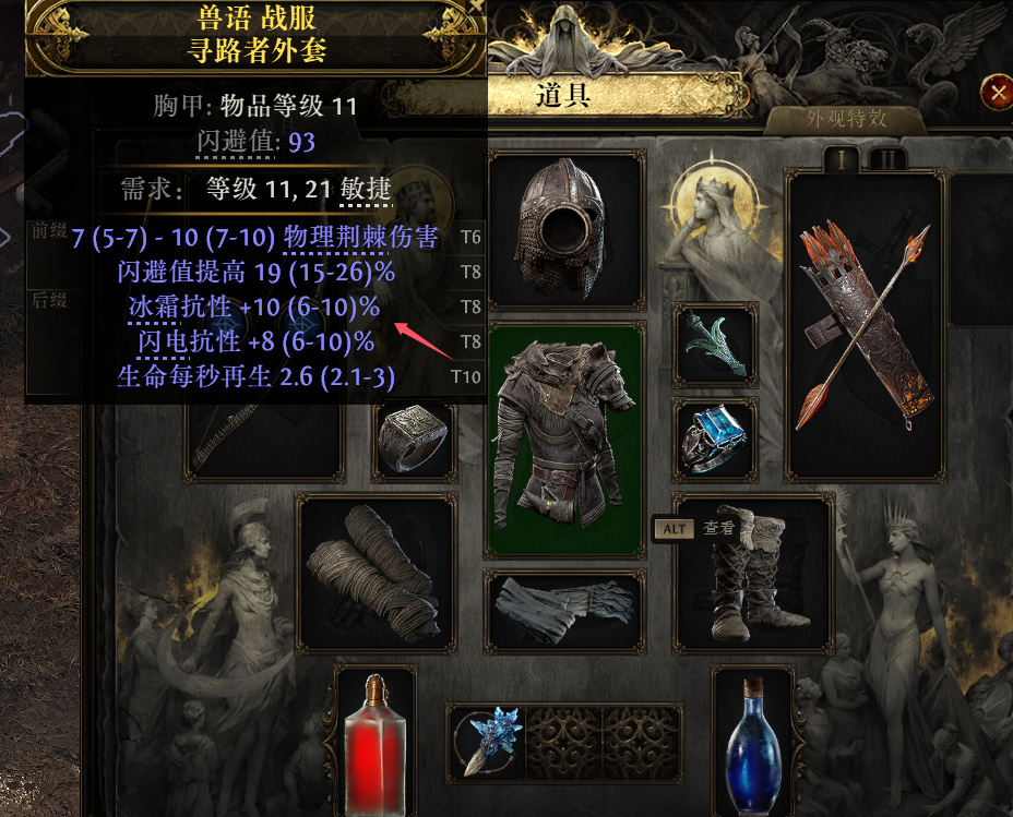 第一章项链和戒指可以佛系一些,这两个部位前期一般掉落的都不好,有啥带啥。戒指方面想要再提升的话,优先筛选冰抗、物理和闪电伤害。项链前期有精魂和投射物等级就算是毕业了。