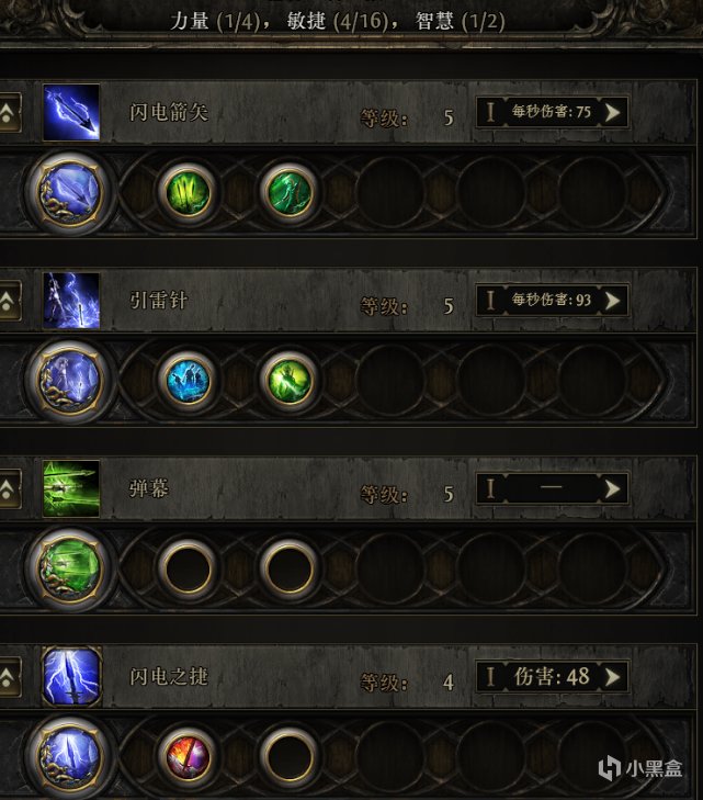 技能输出主要还是靠闪电箭矢和引雷针,前期技能石和辅助石优先满足这两技能即可。