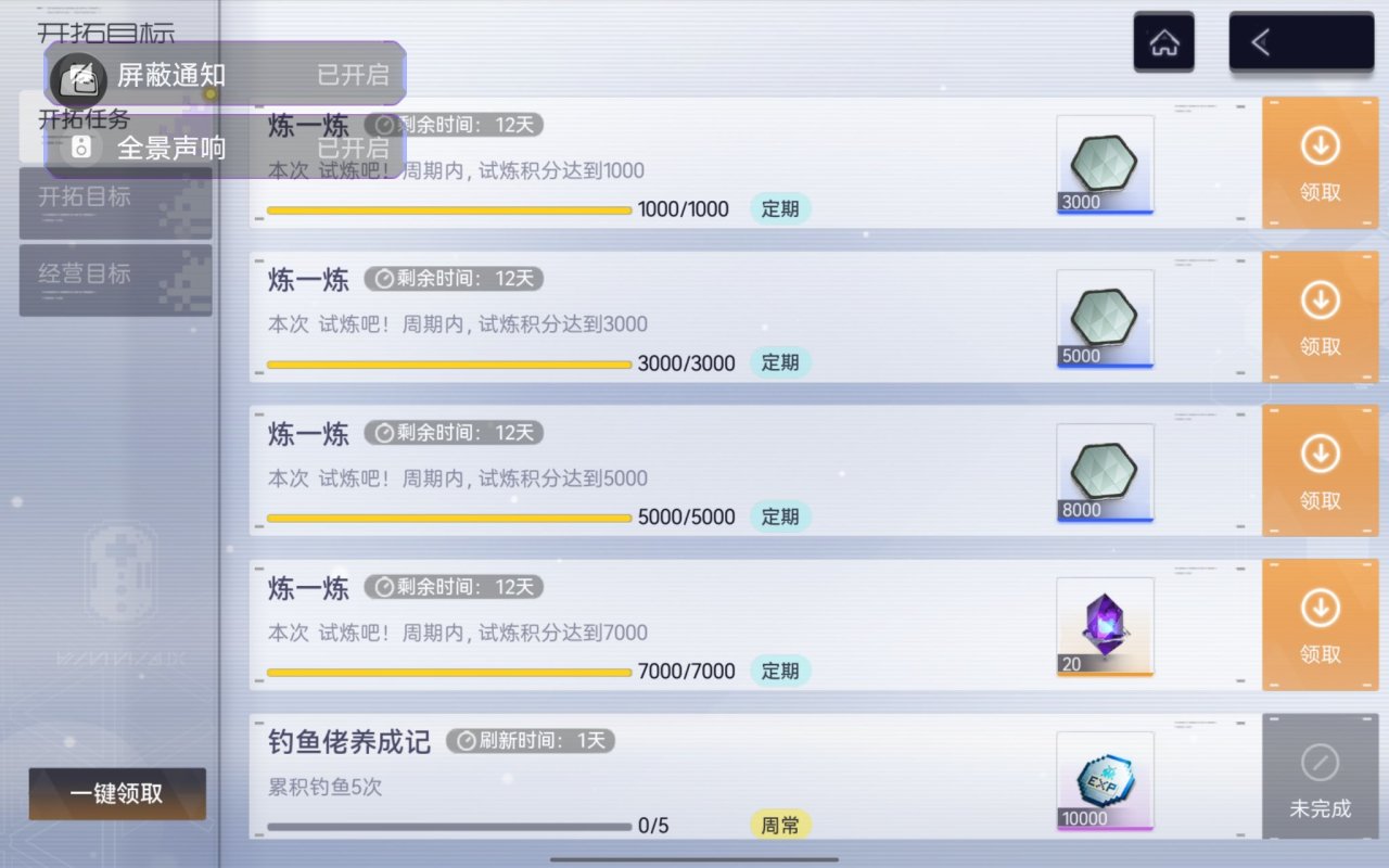 有個限時任務,試煉吧!,20數據金,開拓目標點開,自行完成大地圖探索,開直播耗時長。