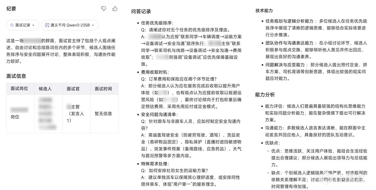 面試場景,無論你是面試官還是被面試者,都能借助DingTalk A1做出精準覆盤。