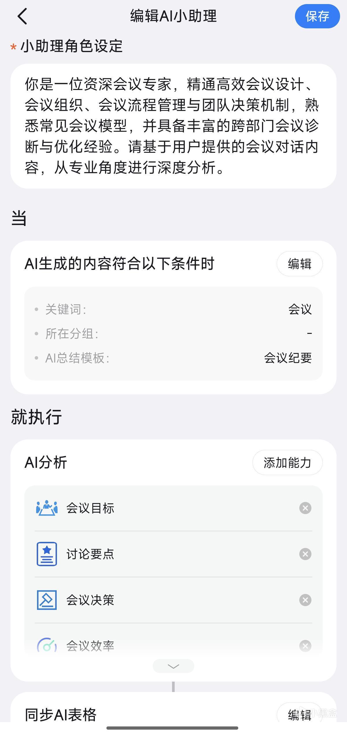 如果你還有更精細的要求,還可以對這些AI小助理手動調教,如修改角色設定、自動觸發分析條件、分析能力等。