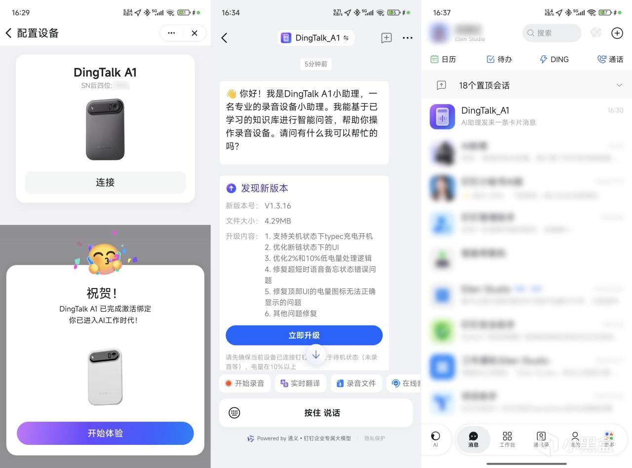 而在消息對話頁面,長按語音鍵可以直接從DingTalk A1收音發送語音消息。