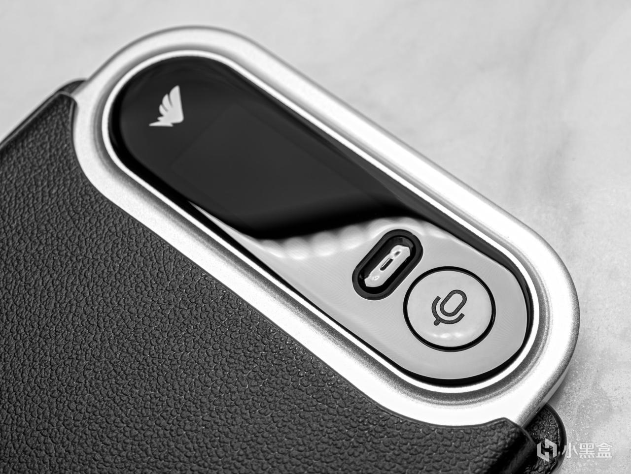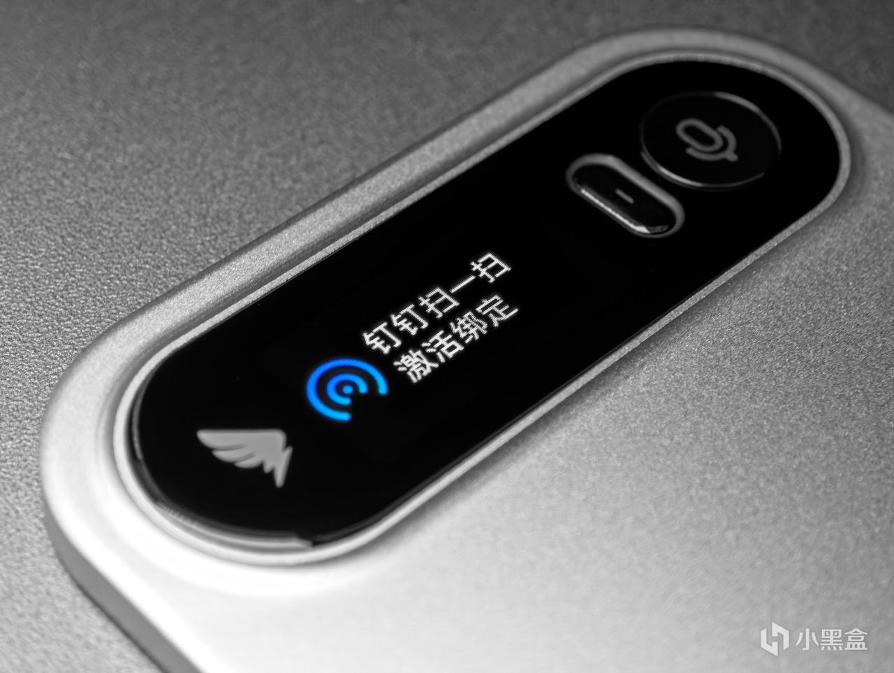 左側爲釘釘logo,中間爲0.95寸彩色顯示屏,然後右側緊跟長條型錄音鍵和AI語音交互鍵。