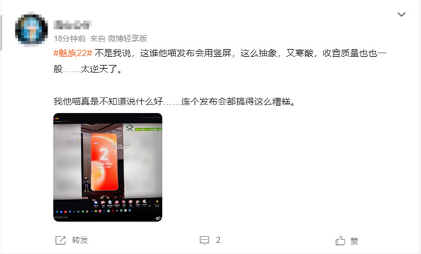 值得注意的是,此次发布会的直播画面采用竖屏,魅族表示,发布会的这块屏幕是按照魅族22正面同比例打造。