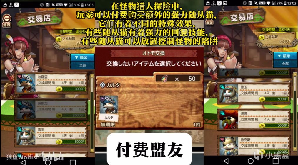 在怪物猎人探险中,玩家可以付费购买/点数兑换额外的强力随从猫,它们有着不同的特殊效果,有些随从猫有着强力的回复技能,有些随从猫可以放置控制怪物的陷阱