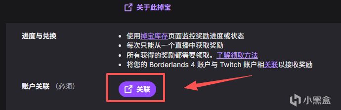 *一定要注意绑定好 Borderlands 4 和 Twitch 账号,否则奖励不到账,绑定页面 - https://www.twitch.tv/drops/campaigns,点击关联跳转: